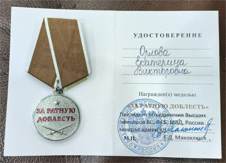 Директор «Фабрики зернового хлеба» Екатерина Орловой была награждена общественной медалью «За ратную доблесть» за гуманитарную помощь бойцам на СВО в виде полезного армейского хлеба, за содействие в трудоустройстве ветеранов СВО.